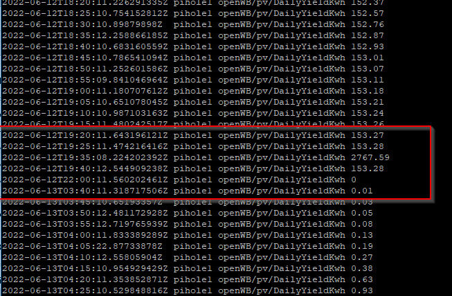 Es ist immer der gleiche Wert, und ich weiß nicht, wo er herkommt und wie ich ihn verhindern kann. Im Langleit-Graphen von openWB sehe ich einen solchen Wert nicht.