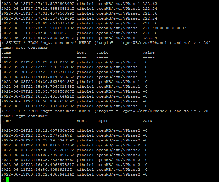 per Telegraf schicke ich die Daten von openWB (ohne Wallbox, nur Software auf RaspPi) an eine InfluxDB.