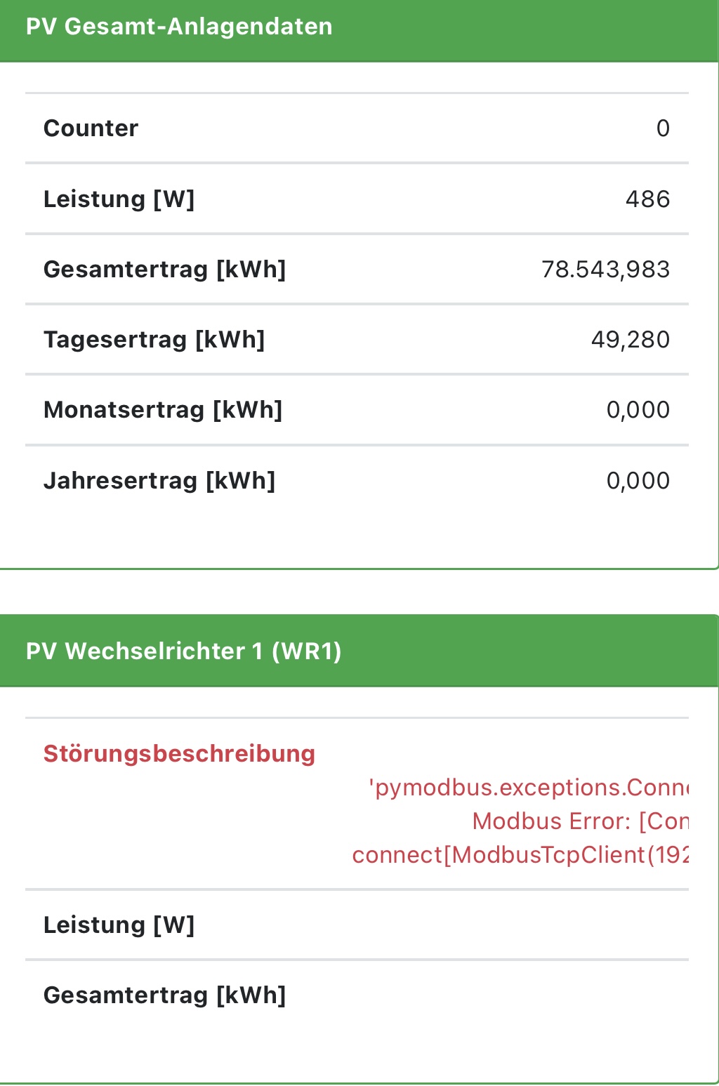 leider bekomme ich keine Daten meines LP2. Ich habe eine OpenWB Series 2Unter dem Status wird der LP2 angezeigt aber die Spannungswerte z.b. nicht.