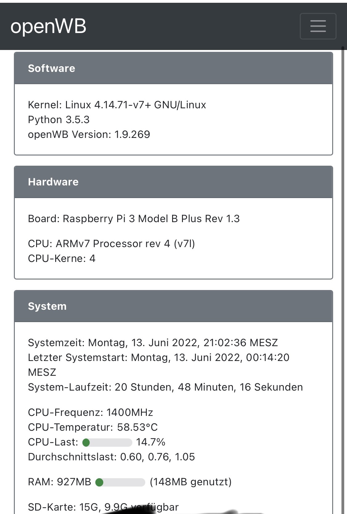 Hardwareprobleme bitte über die Funktion Debug Daten senden mitteilen oder per Mail an support@openwb.de