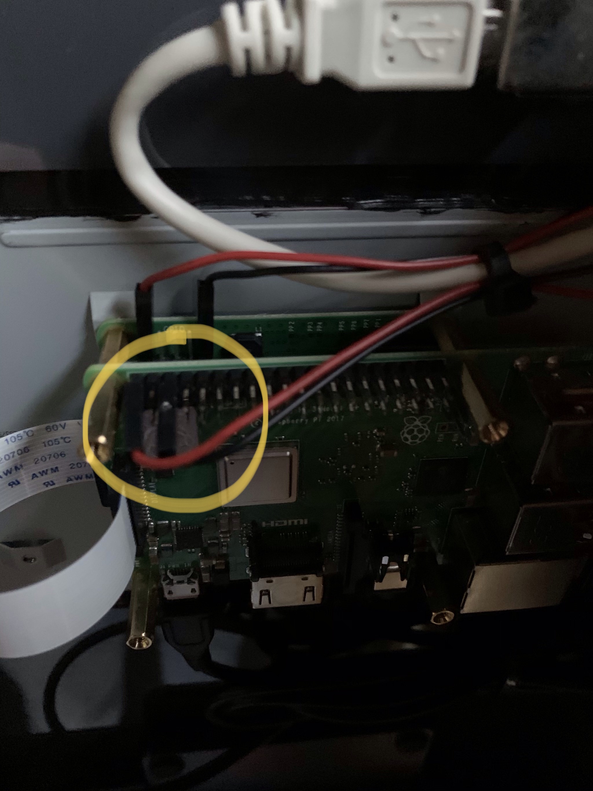 Ich habe versucht die Add On Platine zu montieren, d.h. ich habe Abstandshalter aufgeschraubt und die Platine auf die GPIOS des Raspi draufgesteckt (bzw. versucht). Auf der Raspi Platine sind allerdings zwei Stecker draufgesteckt (ich denke vom Display), so dass zwei Steckplätze benutzt sind und ich die Platine nicht daraufstellen kann. Wo muß ich die denn anschließen?