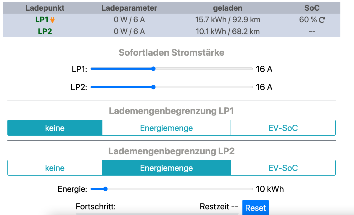Klappt soweit ganz gut, ich kann zum Beispiel den Lademengenbegrenzungtyp einstellen und bei Typ Energiemenge auch die kWH Zahl.