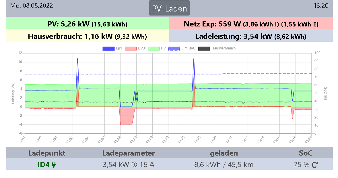 Sehe ich genauso, wenn ich mit Überschuss laden möchte, habe ich das PV Laden auf 1phasig festgelegt. Bei einer 22 KW WB könnte dann Deine PV Anlage bis zu 32A einphasig also 7,4KW Überschuss Leistung laden. Meine PV kommt gar nicht an eine höhere LeistungRobeck hat geschrieben: Sa Aug 06, 2022 6:56 am Die Frage ist, ob es bei der kleinen PV sinnvoll ist mit 3 Phasen zu laden.