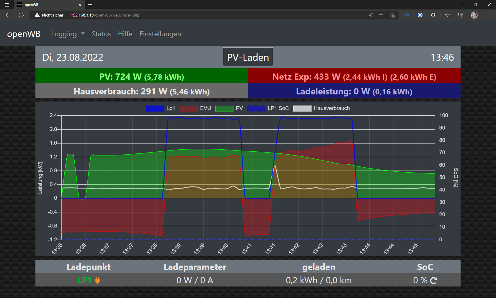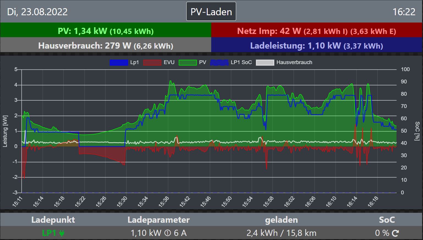 Kia e-niro 64KW, VW eUp!, PV Anlage Ost/West mit 6KWp, WR SE 5000H, openWB series 2, Standard mit 1/3-P Umschaltung
