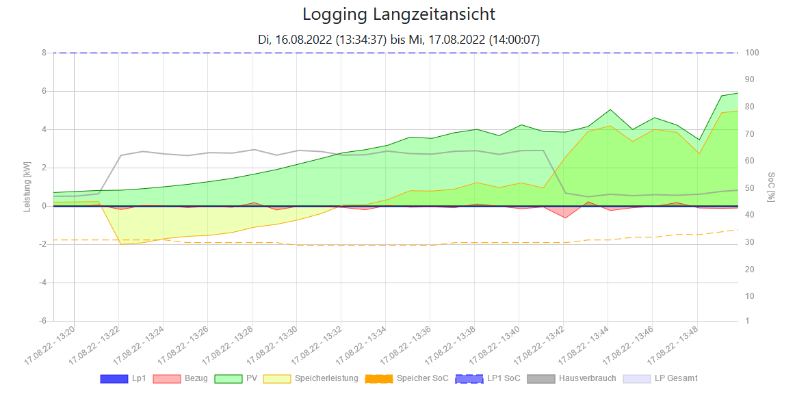 In der Langzeitdarstellung gibt es die Möglichkeit, in die Zeitachse hinein zuzoomen. Leider werden hier aber die Smarthomeverbraucher nicht mit angezeigt.