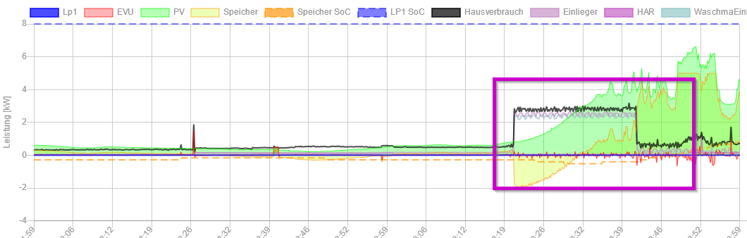 Ich wünsche mir daher diese Zoomfunktion auch für die Themedarstellung, oder alternativ die Darstellung der Smarthomeverbraucher auch in der Langzeitdarstellung, um hier die minütlichen Abhängigkeiten der verschiedenen Verbraucher besser erkennen zu können
