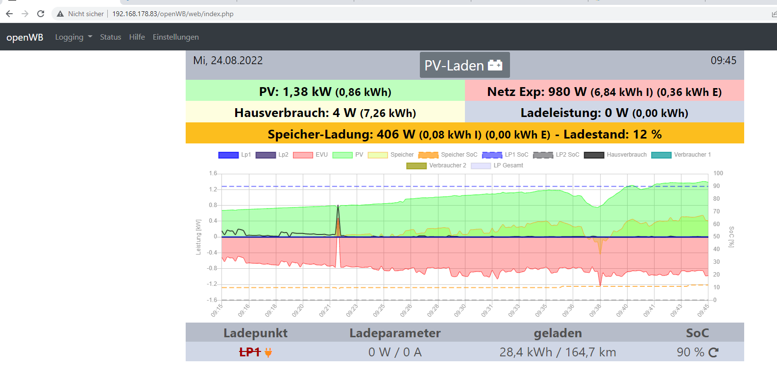 Ich habe mal zwei Screenshots gemacht ca. zur selben Zeit soweit das eben möglich ist. Einmal was der Wechselrichter zeigt