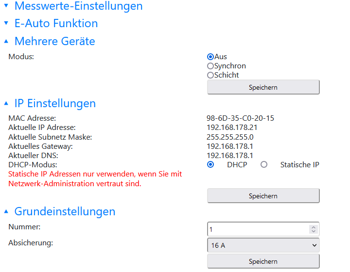 Vielleicht habt Ihr für mich als reinen Anwender – also ohne Shelly, Phasen- und sonstiges Gedöns – einen Tipp zu meinen Einstellungen.