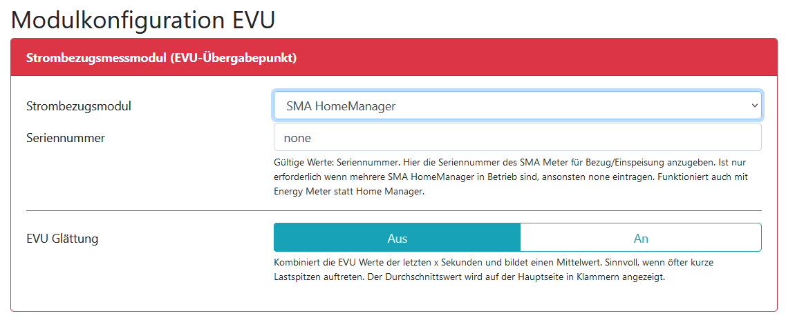 Es kommen keine Daten an. Nicht falsche Daten, sondern garkeine. Bzw, irgendwann muss mal ein Datagramm angekommen sein, denn irgendwo müssen die 440 W herkommen, die da oben stehen. Oder hattest du mal eine andere Quelle konfiguriert?egeus hat geschrieben: Di Okt 11, 2022 12:41 pm Was mir aufgefallen ist, dass wenn ich auf Status gehe, im Tab EVU "Störungsbeschreibung