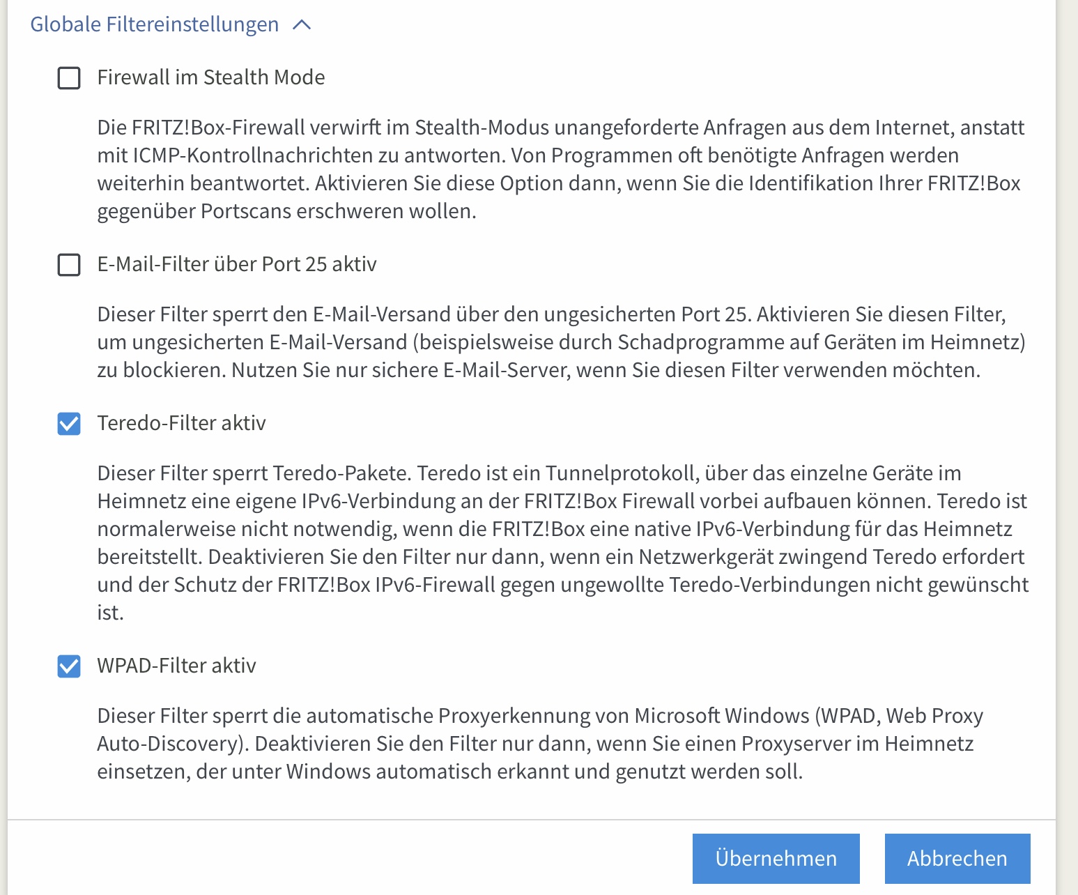 Verändert habe ich allerdings an der FritzBox (bewusst) nichts.