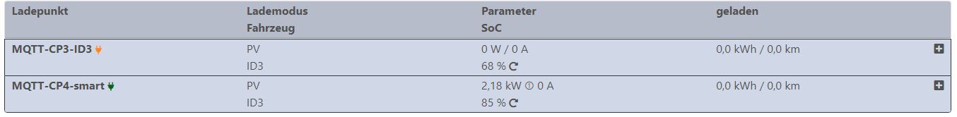 Mittlerweile hat sich der SOC des ID3 geändert und das UI zeigt auf beiden Ladepunkten noch die alten Werte an (68/85) in mqtt sehe ich 86%.