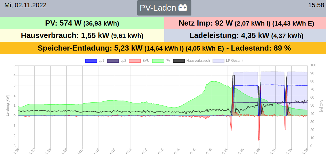 meine Dual openWB lädt die beiden Autos im MOment im "PV Laden" Modus, obwohl es nicht sein sollte.