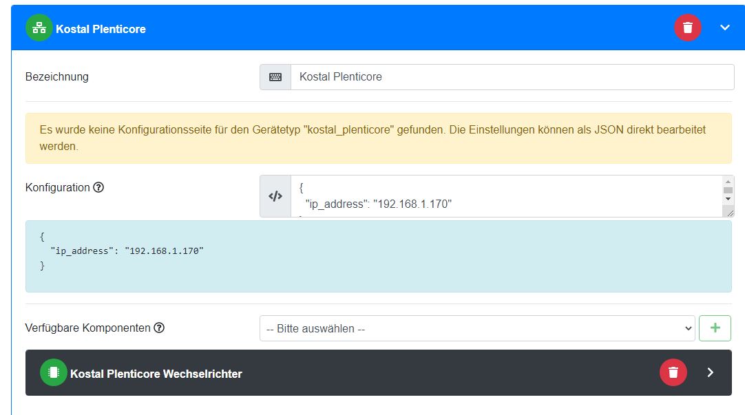Ich habe den MQTT-PV-Modul gelöscht, die mqtt-Weiterleitung in NR abgestellt und den Plenticore WR konfiguriert (IP-Adresse).