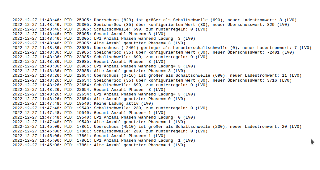 Die Logs sind unauffällig, allerdings sieht man keine Phasen-Umschaltung im Log.