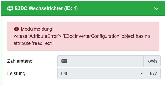 Die Konfiguration habe ich nach dem Update nicht neu gemacht. Die Reihenfolge ist also geblieben. Die letzte müsste Speicher sein: SoC stimmt mit dem 1.9er Wert überein, nur geladen wurden heute in der 2.0 66Wh und in der 1.9 0,03kWh. Aber zählen die IDs nicht von 0, womit Speicher dann 3 wäre? Ah, ich hab's: Ich hatte gestern mal einen Ladepunkt angelegt, aber nicht gespeichert. Der scheint also ohne Speichern unvollständig geblieben zu sein.