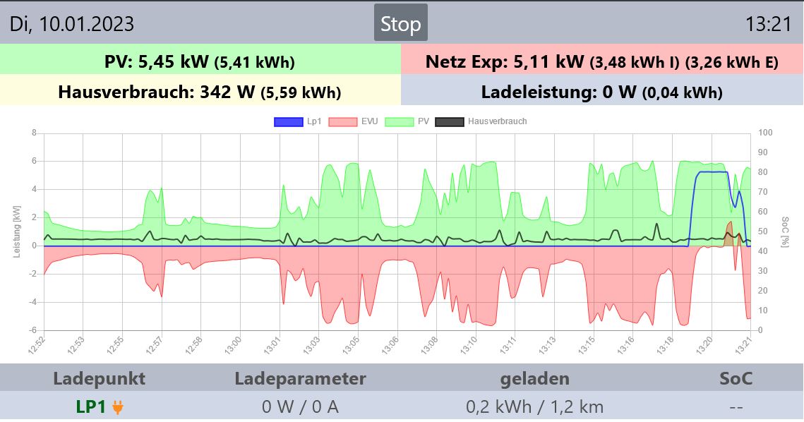 Wenn ich den Modus PV Laden aktiviere, startet die WB mit dem Ladevorgang. Sie schaltet jedoch sehr schnell hoch auf 2 phasiges Laden und lädt dann mit 7,2 KWh. Dabei wird völlig ignoriert, wieviel die PV-Anlage produziert.