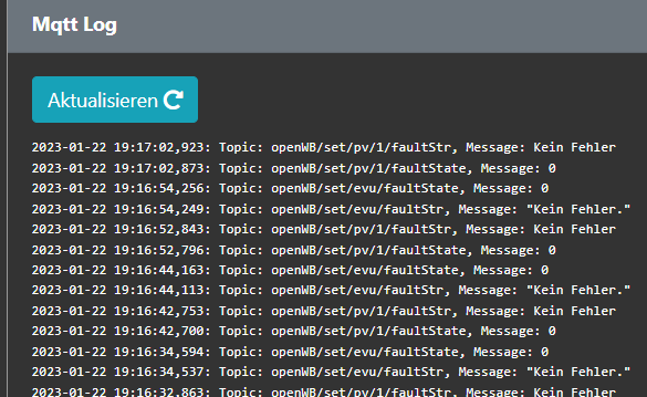 Nach einen Neustart des MQTT-Adapters im IOBroker bekomme ich in der openWB unter Debug folgenden Fehler: