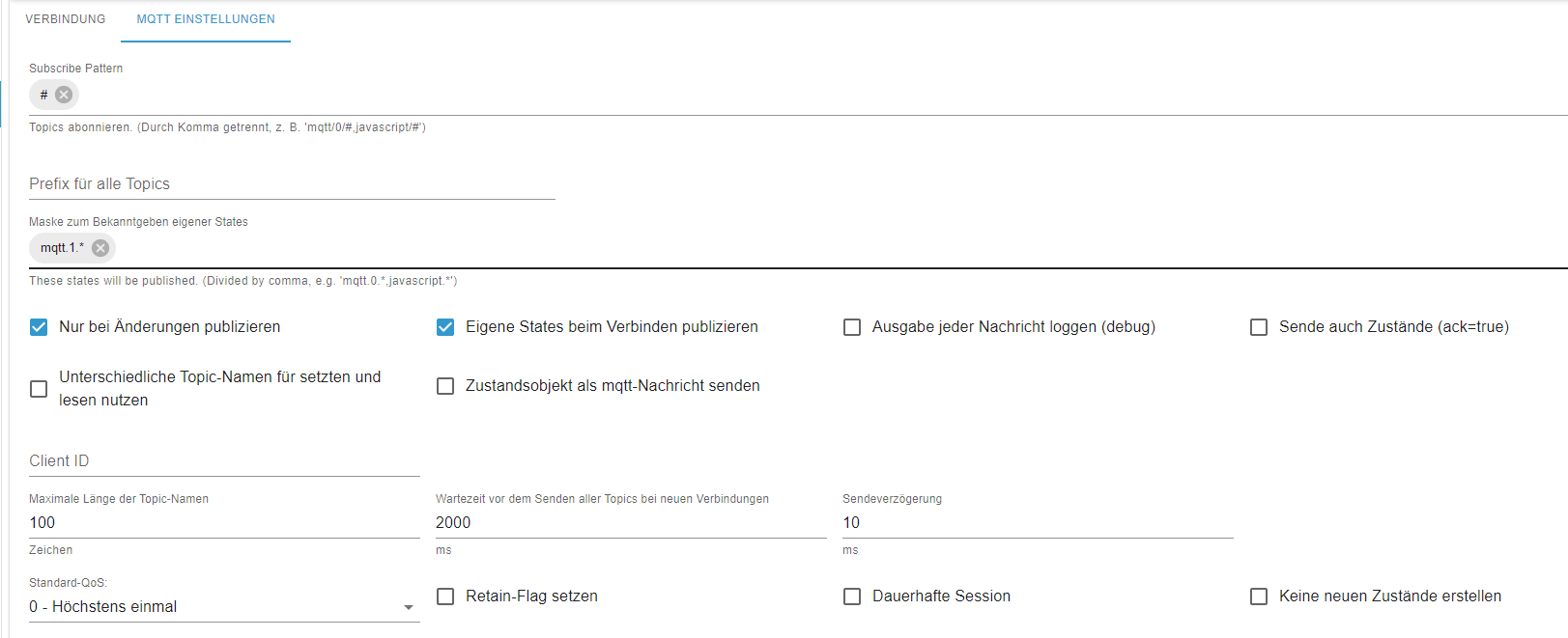 Im iobroker habe ich die beiden Topics erzeugt und aus Node-Red mit den Daten versorgt:
