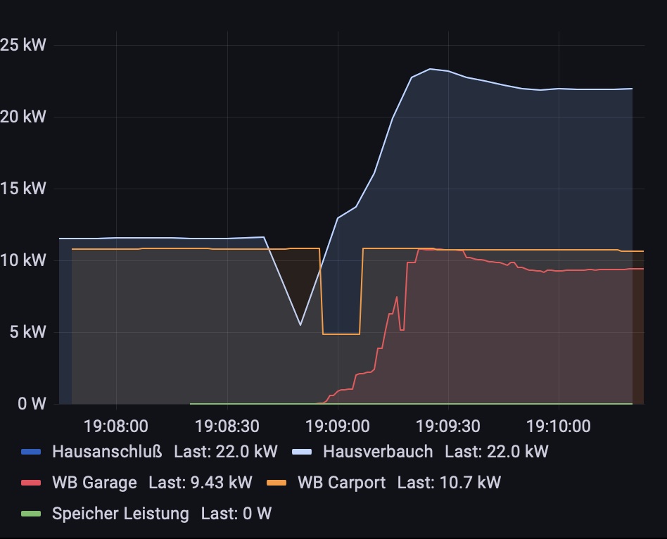 EDIT: Wenn ich den Wasserboiler am Stromkreislauf des LP2 starte, bleibt die Ladeleistung konstant.