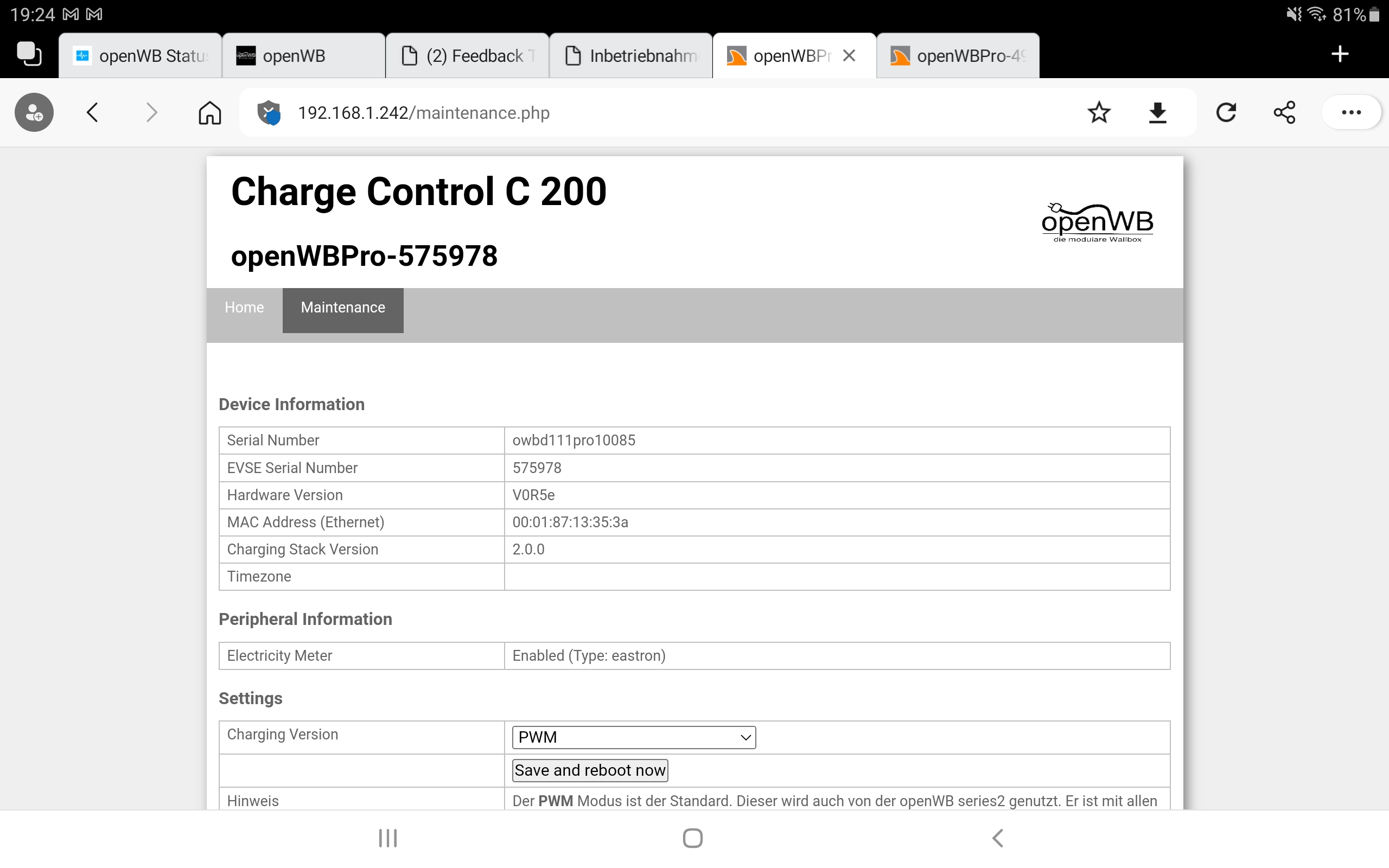 Dort wurde mir gesagt "Wenn im Bereich "maintenance" Charging Stack Version 2.0.0 haben Sie die aktuelle Version."