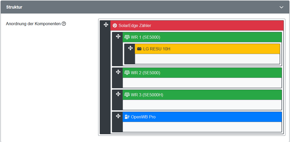 Ich habe drei WR von Solaredge, der WR 1 (master) hat die IP 192.168.1.99:502 , Modbus Adresse des Zählers muss ich eine 1 eintragen wenn ich mich nicht täusche, beim Akku auch, oder?