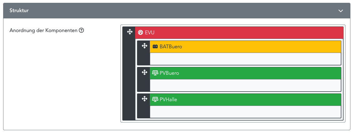 Die Struktur ist bei mir einfacher, aber die Hierarchie passt (Zähler-PV-Batterie-Ladepunkt).