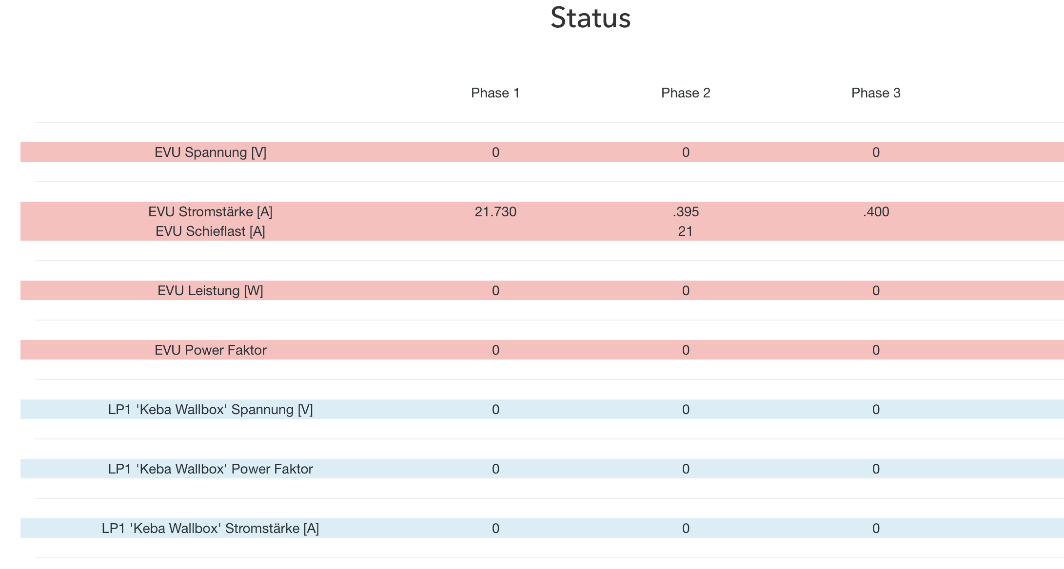 EVU Leistung aktualisiert sich aber die Stromstärken nicht?
