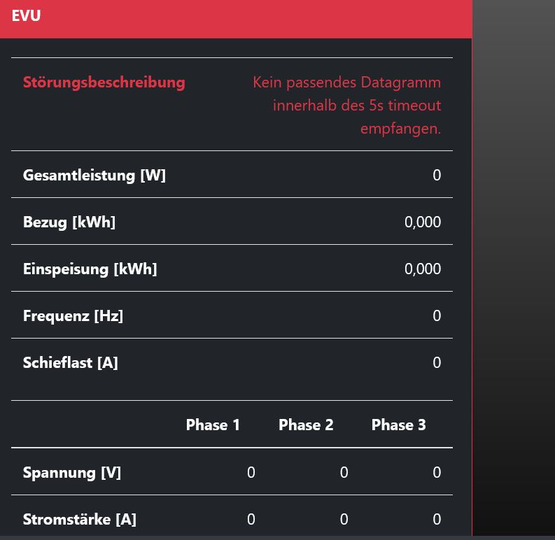 Im Statuts der openWB habe ich unter EVU folgende Meldung: