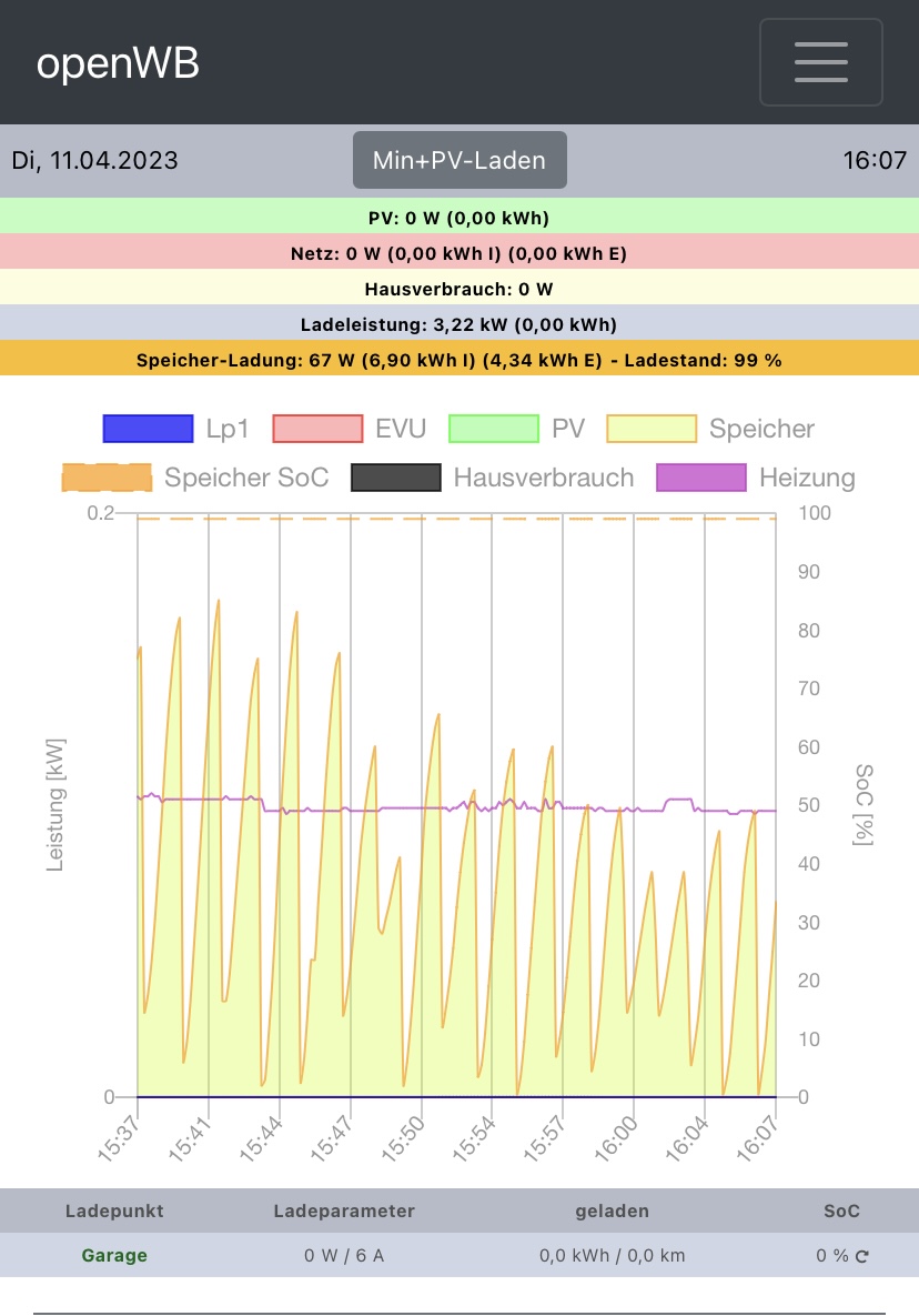 folgendes Problem, seit gestern bekomme ich in der openWB nichts mehr angezeigt außer den Speicher...