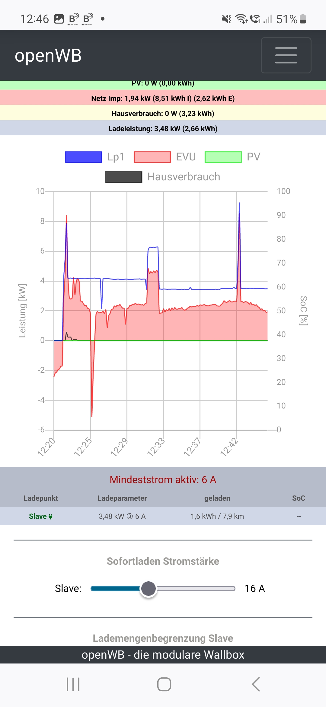Im Moment erziele ich nach wie vor nur eine höhere Ladeleistung durch das Festlegen der Minimalstromstärke bei den Einstellungen zum Sofortladen