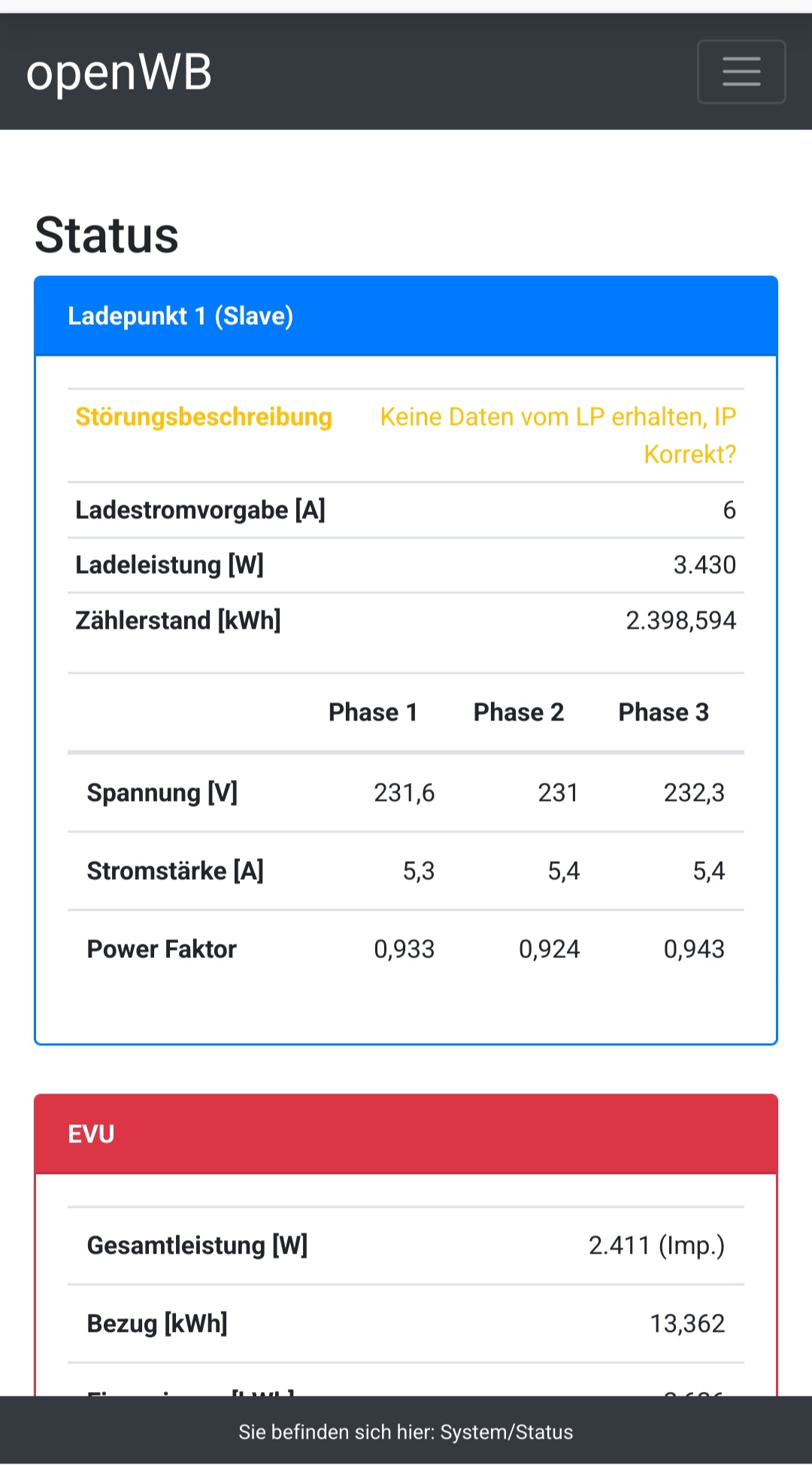 Die Fehlermeldung habe ich gesehen, kann da aber nichts zu sagen. Eigentlich ist die betroffene WB ein untergeordneter Ladepunkt, da das aber noch nicht so richtig läuft, habe die "diese WB ist nur ein Ladepunkt" Funktion deaktiviert. Sie sollte also eigentlich eine eigenständige WB sein.