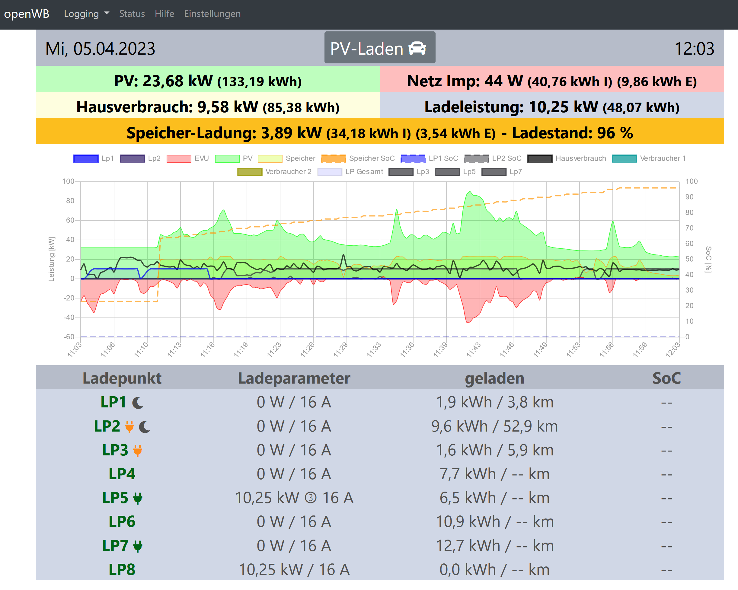 Zusätzlich habe ich nun festgestellt, dass die OpenWB keinen Ladevorgang mehr startet. Laut Handy (siehe Screenshot oben) ist sie auf PV-Laden eingestellt. Wenn ich am Handy auf Sofortladen umstelle, bleibt trotzdem PV-Laden angezeigt.