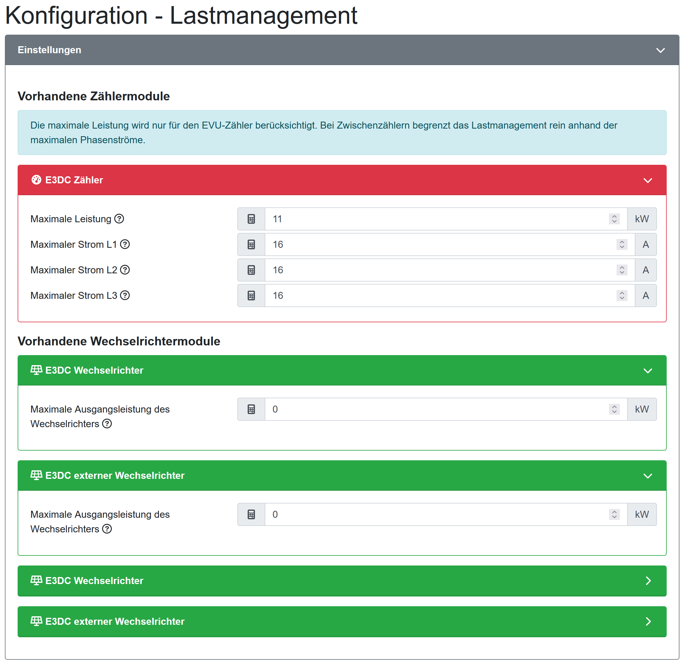Bei E3DC muss man (zumindest ohne Farm) Wechselrichter und Speicher parallel in der Struktur an den Zähler anbinden, obwohl es ein Hybridwechselrichter ist und NICHT den Speicher hinter den Wechselrichter hängen.