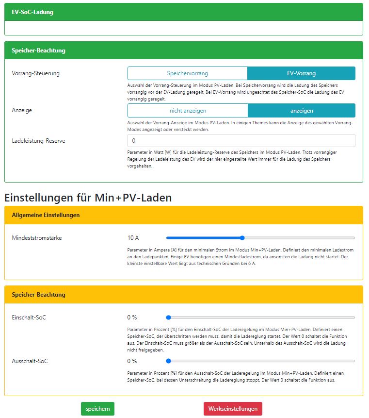 Die Mindeststromstäre bei Min+PV steht auf 6 A.