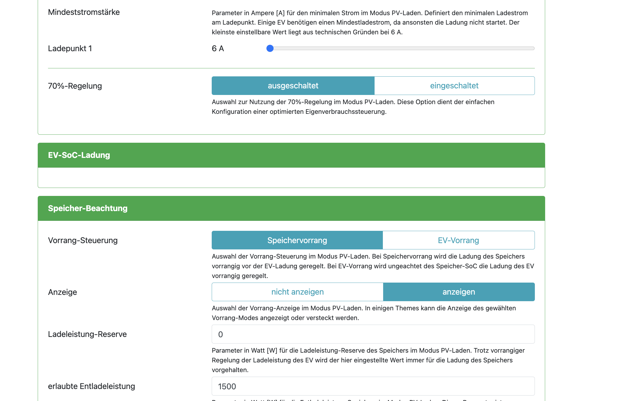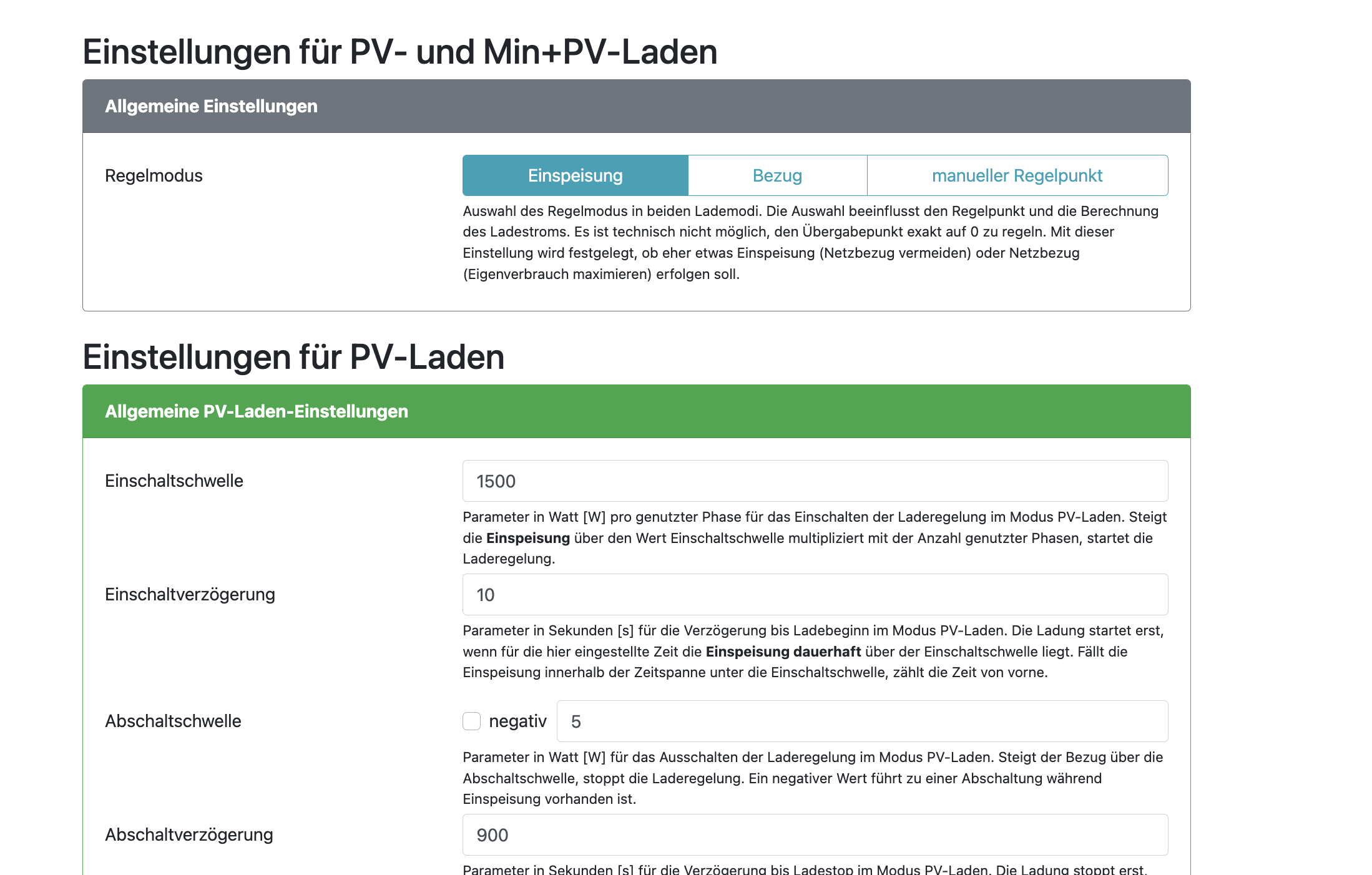 Einstellungen/Ladeeinstellungen/PV und Min PV.