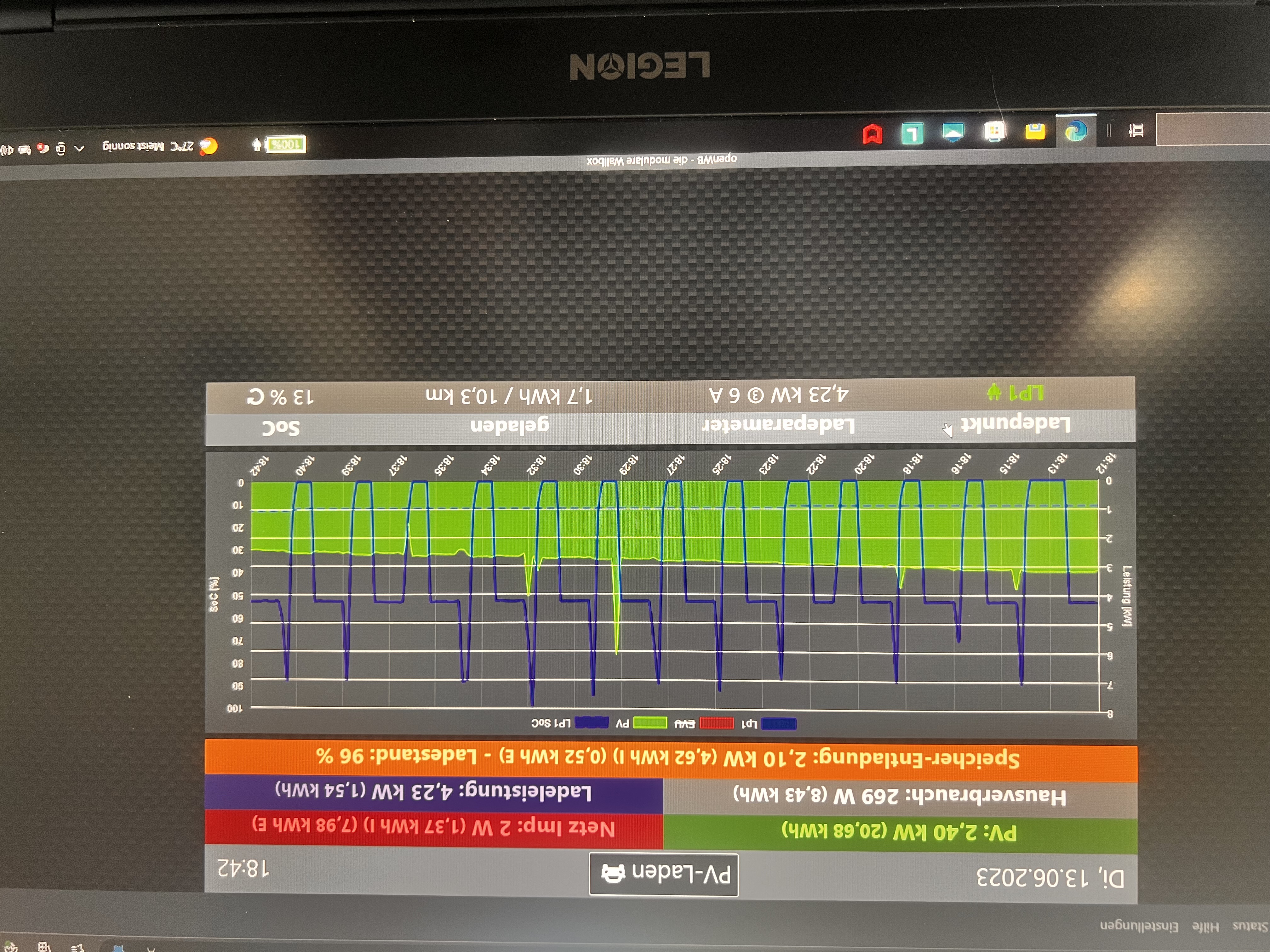 Es gibt immer extreme Leistungsspitzen dann fällt die Ladung ab und dann geht es komplett aus….. es wird auch Strom aus der Batterie im Haus gezogen, obwohl ich dies nicht eingestellt habe.