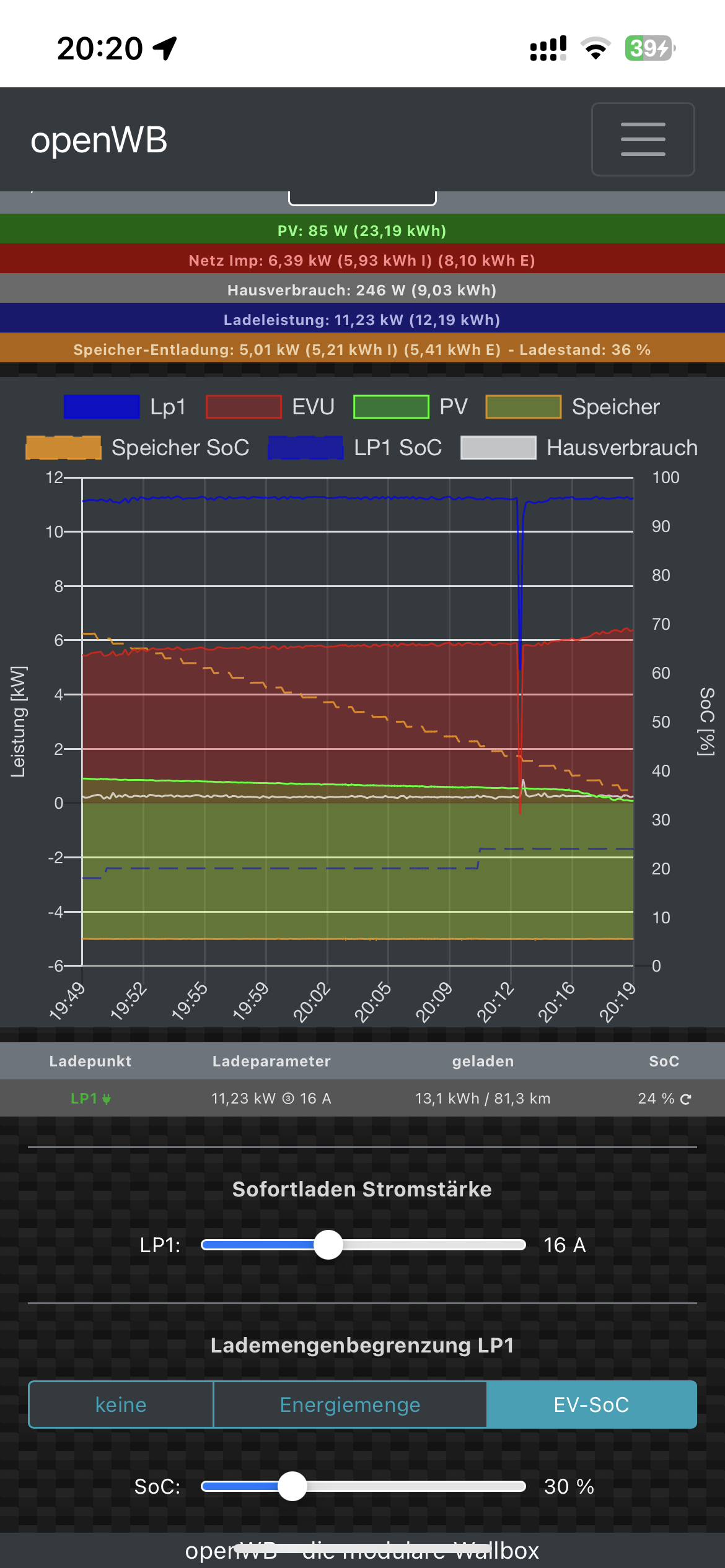 Ich habe die Open WB Wallbox schon eine Weile, jedoch erst seit heute meine PV.