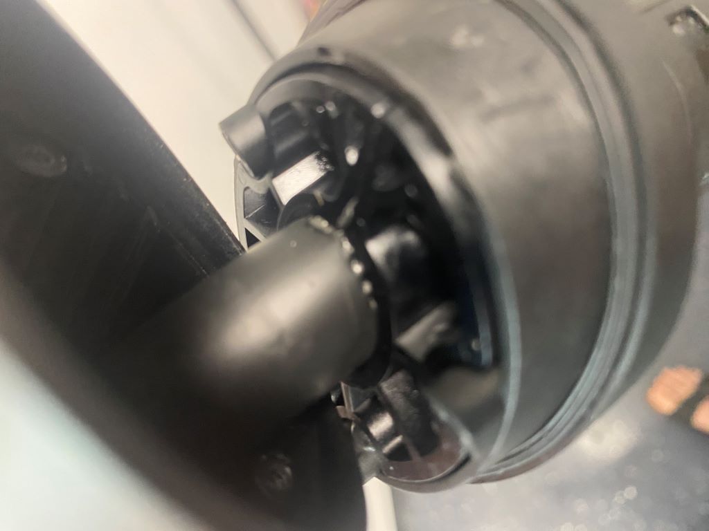 Leider habe ich noch nicht richtig erkennen können, wie sich der mit der OpenWB gelieferte Typ2-Stecker zerstörungsfrei öffnen lässt. Ich habe nur 4 T10-Torxschrauben an der Unterseite gefunden. Nachdem ich die 4 Schrauben geöffnet habe, konnte ich die Knickschutztülle etwa 1 cm nach hinten aus dem Gehäuse herausziehen und in den Stecker hineinschauen. Es schien mir so, als wäre das Kabel mit der Knickschutztülle verklebt worden, so dass sich das Kabel nicht weit genug durch die Tülle schieben lässt, um den vordere Teil mit den Kontakten nach vorne aus dem Gehäuse schieben zu können.