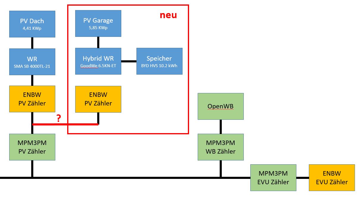 Gibt es denn niemanden, der eine Idee hat, wie man die neue Anlage am besten in Verbindung mit oben aufgeführter OpenWB Konfiguration einbindet?