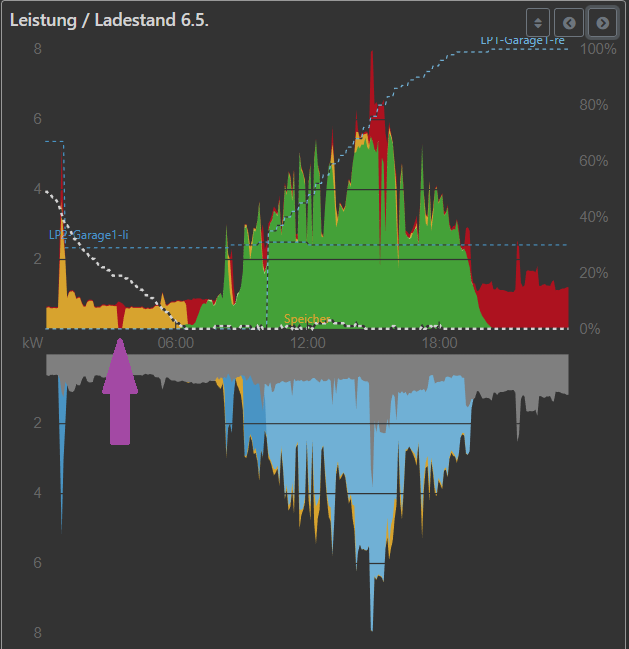 und zwar habe ich früh morgens, so ca. 5 Uhr einen hohen kurzen Netzbezug (sieht man auch ganz gut im Screenshot) Ist jetzt auch nicht viel (ca. 1kw) aber wundert mich schon ein wenig !?