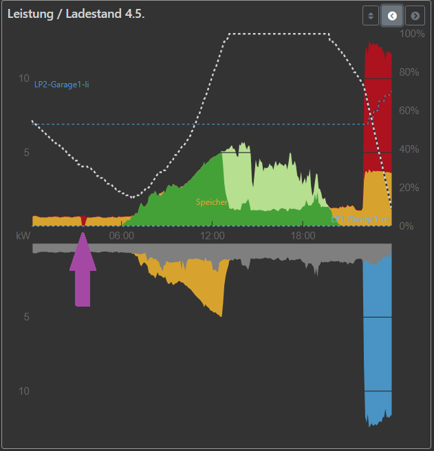 und zwar habe ich früh morgens, so ca. 5 Uhr einen hohen kurzen Netzbezug (sieht man auch ganz gut im Screenshot) Ist jetzt auch nicht viel (ca. 1kw) aber wundert mich schon ein wenig !?