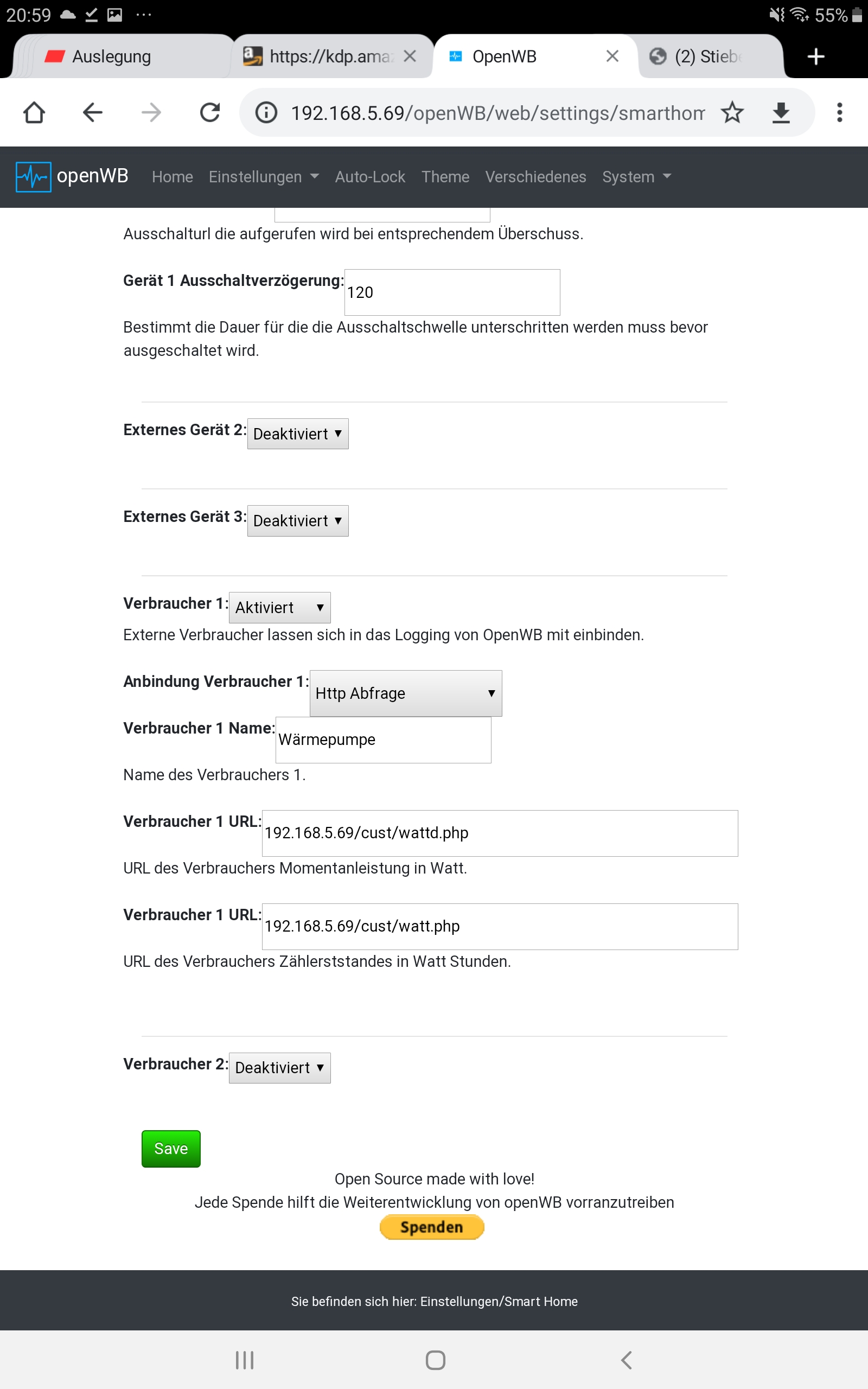Alle phyton dateien zur Ansteuerung sind ganz unten, hier die aktuelle Parametrisierung im openwb