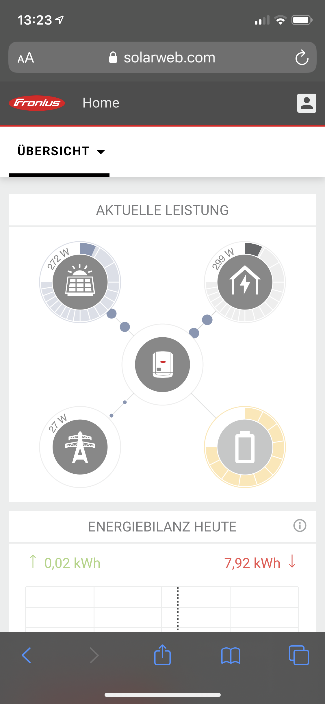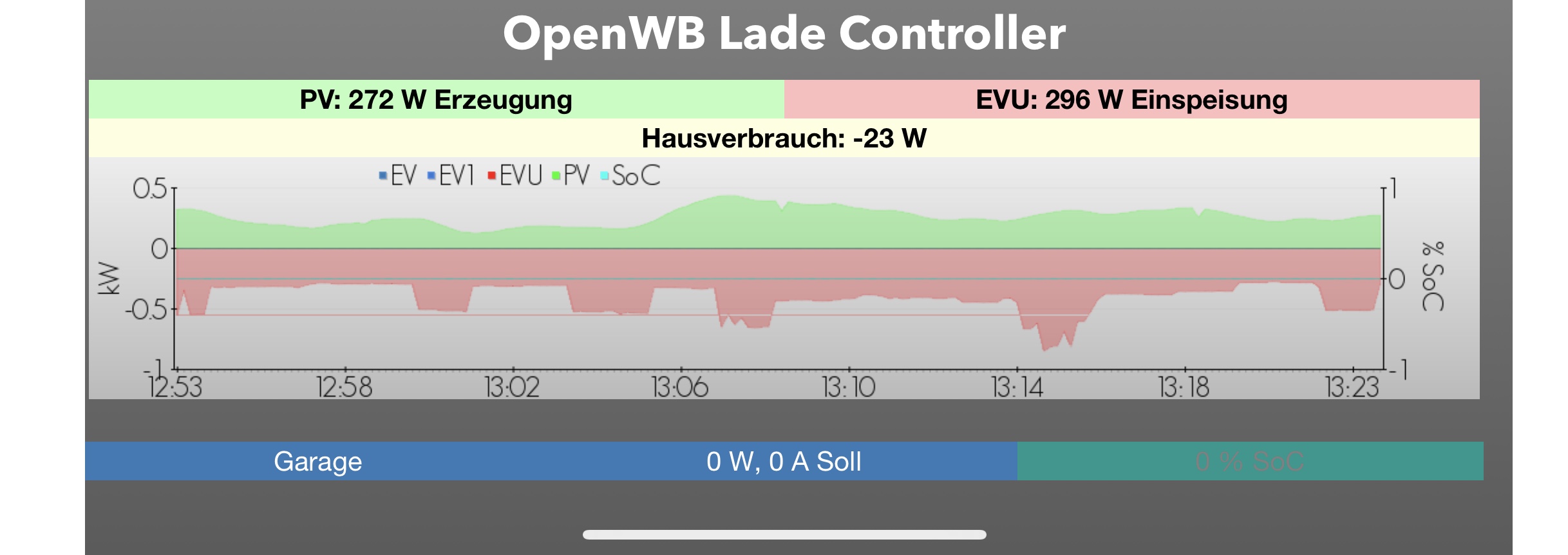 In OpenWB wird bei aktuellen Einstellungen die PV-Erzeugung und der Hausverbrauch richtig angezeigt.
