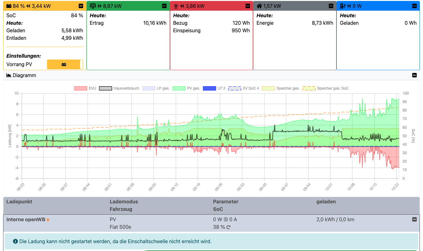 hab das Problem das bei der Priorisierung vom Speicher das Auto nicht geladne wird, auch wenn genug PV Leistung vorhanden ist.