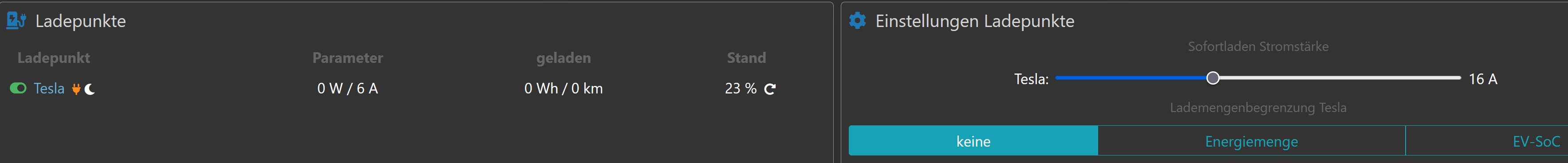 Ich weiß jetzt nicht mehr weiter, werde die Nacht nochmal schauen, aber gerade steht er auf Sofort laden mit einem SoC von 22% und solte eigentlich bis auf 80% (Tesla Einstellung) laden :-(