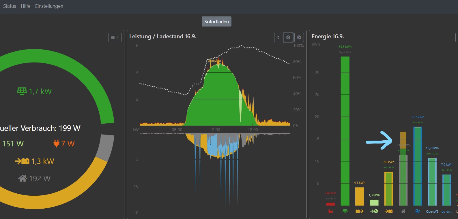 an Tagen an dem ich auch mit dem go-echarger das Auto lade stimmt bei mir die Darstellung des Hausverbrauches nicht, siehe Grafik. Hier sind dann immer PV und Batterieanteil größer als der gesamt Hausverbrauch. Gibt es hierfür eine Lösung, bzw. soll ich mich an den OpenWB Support wenden?