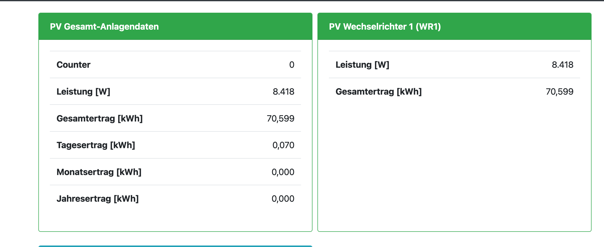 Nochmal zur Erklärung des Hausverbrauchs - der wird errechnet und nicht gemessen: EVU-Punkt abzüglich PV ergibt den Hausverbrauch. Negative Werte sind Produktion, positive Verbrauch. Die gemessenen Werte kann man ganz gut auf der Status-Seite einehen und mit denen aus dem Wechselrichter oder sonstwoher vergleichen.