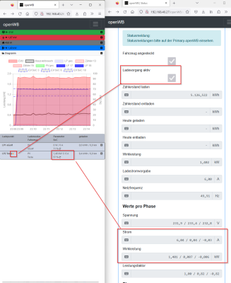Auffällig ist, dass die Statusseite vom LP2 sowohl den Steckerstatus als auch den Ladestatus korrekt aktualisiert. Auf dem Haupt-Ladepunkt kommt davon nichts an.