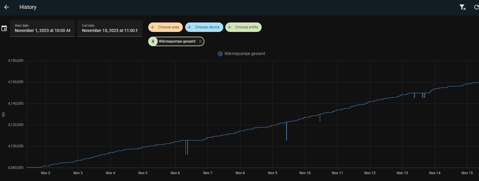 value_template: '{{value | round(0) }}'Woher kommen diese Ausreißer? Meiner Meinung nach müsste die Reihe immer ansteigen.