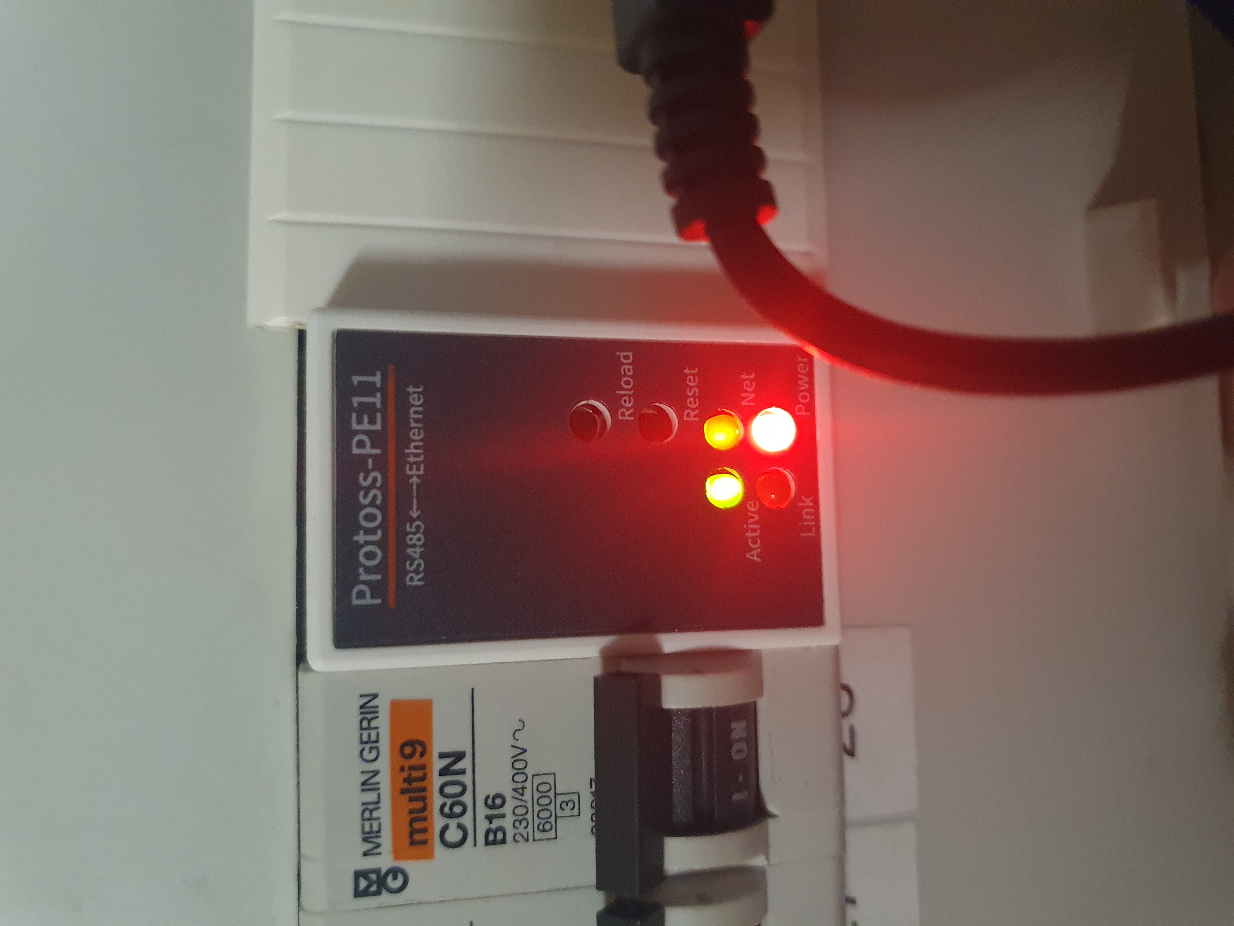 Und kurz darauf blinkt bei mir auch Link. Denke das ist dann das Auslesen der Daten auf der RS485 Seite.